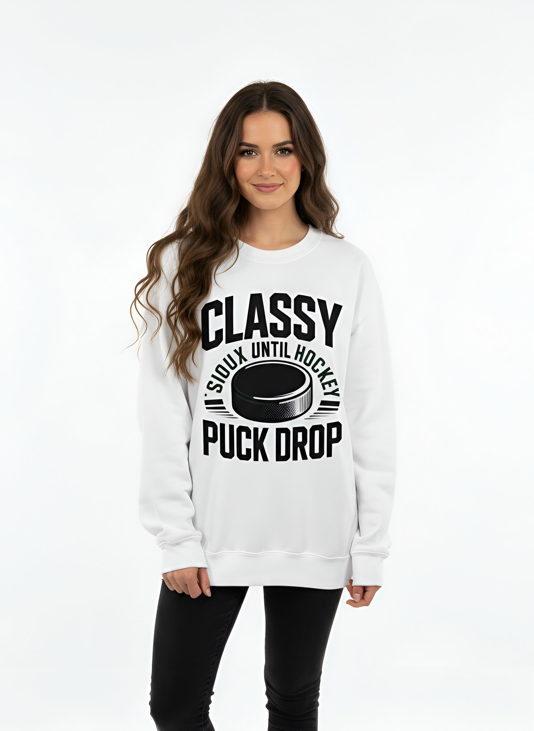 "Classy Until Puck Drop-Sioux Hockey" Crewneck Sweatshirt